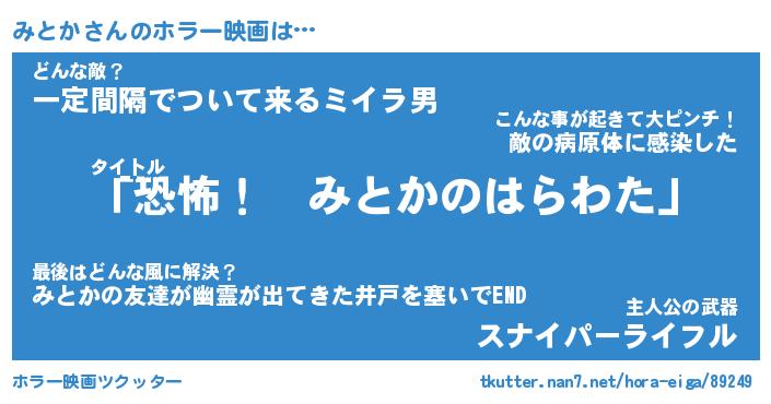 | ヒーロー風カッコイイあだ名 | 『スーパーミトカ』『ウルトラみとかマン』 |