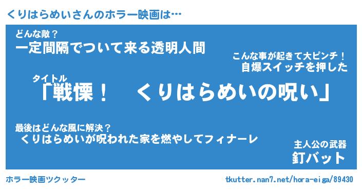 | ヒーロー風カッコイイあだ名 | 『スーパークリハラメイ』『魔戒騎士クリ』 |
