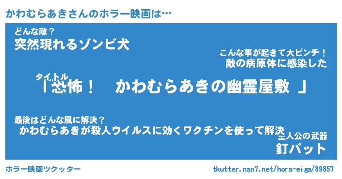 | ヒーロー風カッコイイあだ名 | 『スーパーカワムラアキ』『天弓騎士カワ』 |