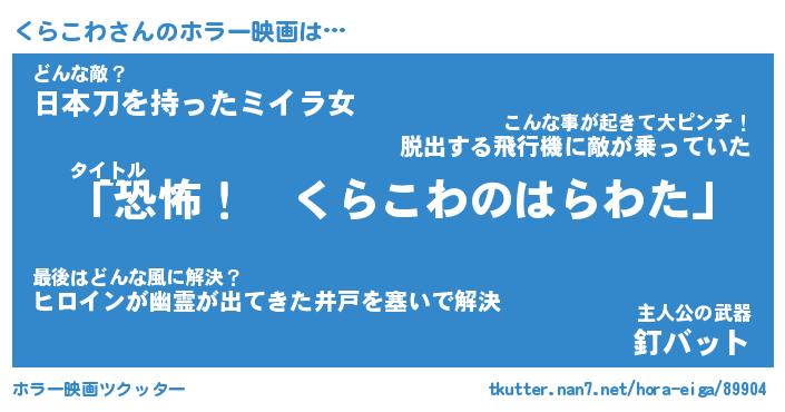 | 男性向けラノベタイトル風あだ名 | 『くらこわの憂鬱』 |