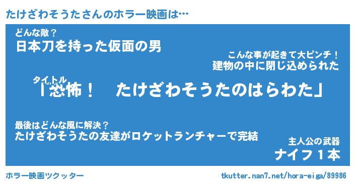 | 男性向けラノベタイトル風あだ名 | 『たけざわそうたの憂鬱』 |