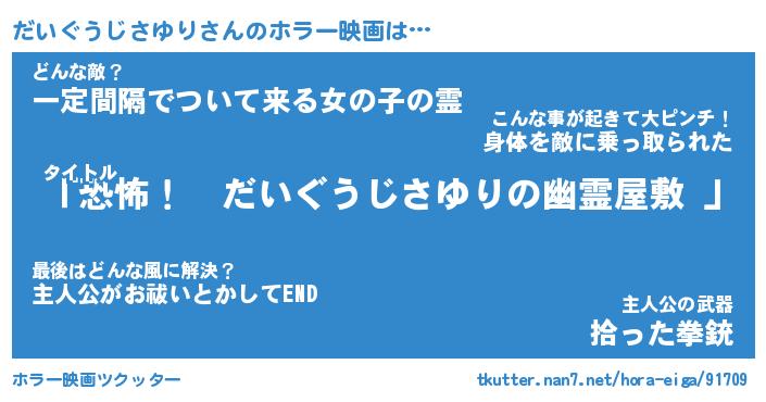 | 胡散臭い通販商品みたいなあだ名 | 『必ず成功する霊験あらたかなお札…その名も「だいぐうじさゆり」』 |