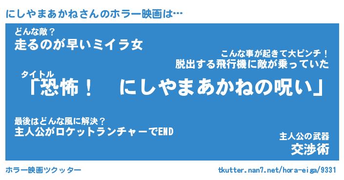 | 男性向けラノベタイトル風あだ名 | 『にしやまあかねの憂鬱』 |