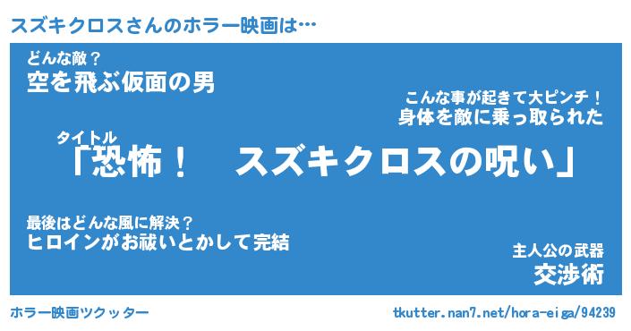 | 男性向けラノベタイトル風あだ名 | 『スズキクロスの憂鬱』 |