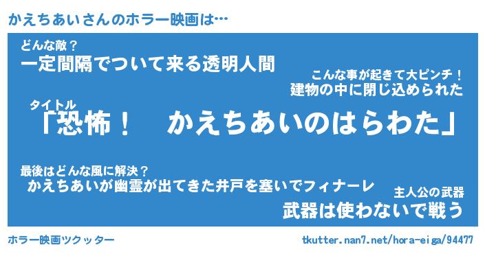 | 男性向けラノベタイトル風あだ名 | 『かえちあいの憂鬱』 |