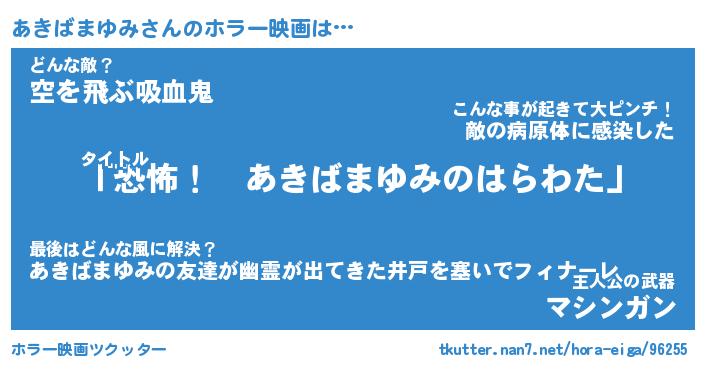 | 肩書あだ名 | 『あきばまゆみ社長』『あきばまゆみ班長』 |