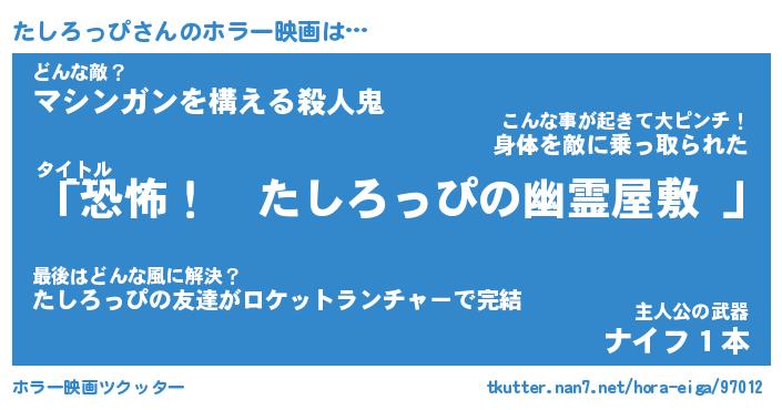 | 伝説のあだ名 | 『伝説のスナイパーたしろっぴ』 |