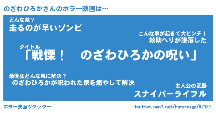 | ヒーロー風カッコイイあだ名 | 『スーパーノザワヒロカ』『黄金騎士ノザ』 |
