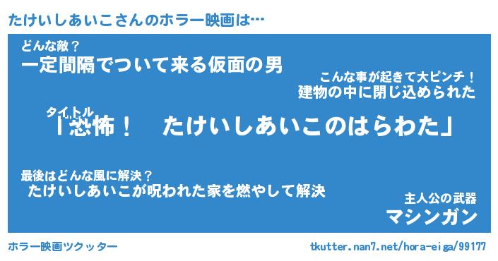 | 胡散臭い通販商品みたいなあだ名 | 『必ず成功するブレスレット…その名も「たけいしあいこ」』 |