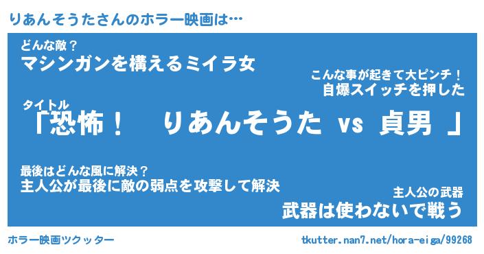 | 胡散臭い通販商品みたいなあだ名 | 『必ず成功する霊験あらたかなお札…その名も「りあんそうた」』 |