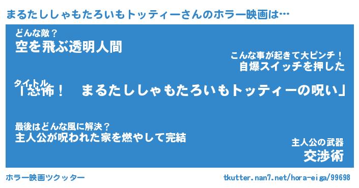 | 男性向けラノベタイトル風あだ名 | 『まるたししゃもたろいもトッティーの憂鬱』 |