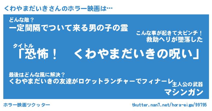 | 胡散臭い通販商品みたいなあだ名 | 『モテモテ間違いなし水晶球…その名も「くわやまだいき」』 |