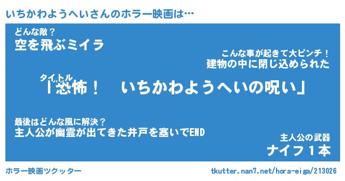 | 男性向けラノベタイトル風あだ名 | 『いちかわようへいの憂鬱』 |