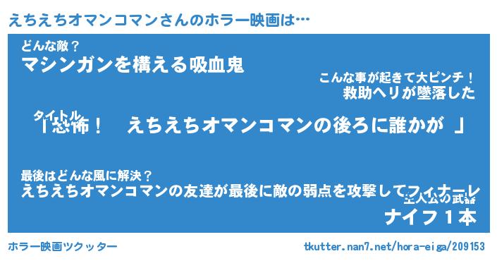 | 男性向けラノベタイトル風あだ名 | 『えちえちオマンコマンの憂鬱』 |