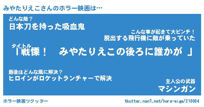 | 伝説のあだ名 | 『不死鳥の傭兵みやたりえこ』 |
