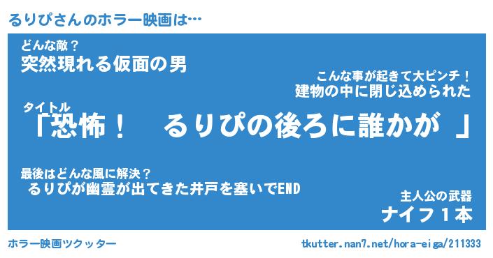 | 男性向けラノベタイトル風あだ名 | 『るりぴの憂鬱』 |