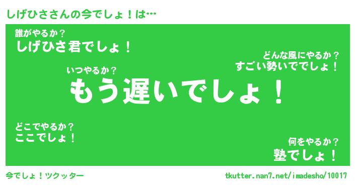 | 意味不明あだ名 | 『ペロリンしげひさ』『永久保存しげひさ』 |