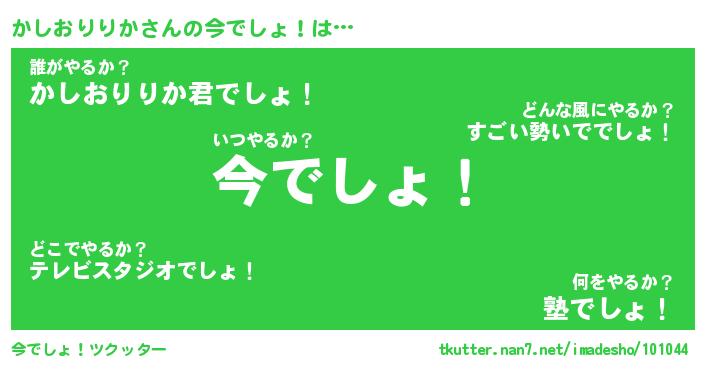 | 胡散臭い通販商品みたいなあだ名 | 『必ず成功するブレスレット…その名も「かしおりりか」』 |