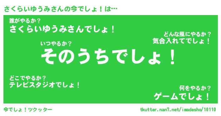 | 恥ずかしいあだ名 | 『プリティーさくらいゆうみ』『さくちん』 |