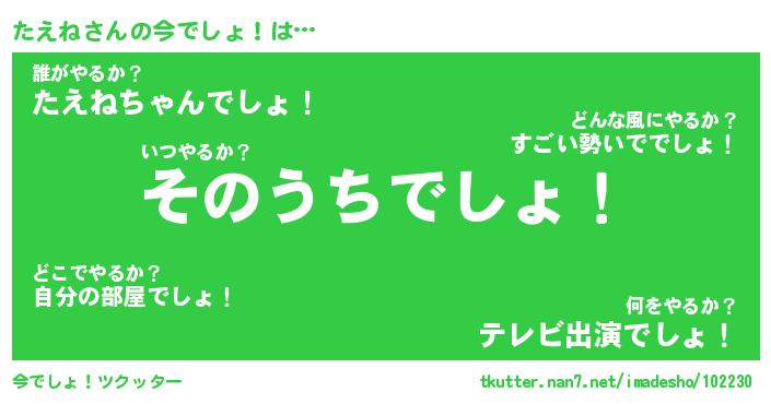| 意味不明あだ名 | 『ペロリンたえね』『たえねフォーエバー』 |