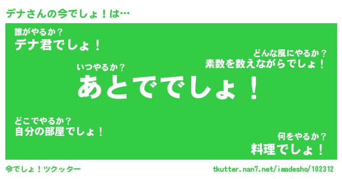 | 料理風あだ名 | 『節約★デナと油揚げの玉子丼』 |