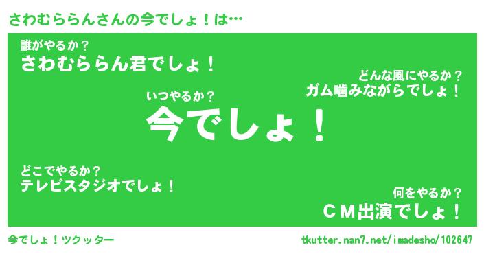 | 伝説のあだ名 | 『伝説のスナイパーさわむららん』 |