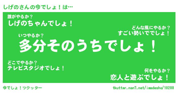 | ヘコむあだ名 | 『しげもー』『酢こんぶ』『しげっぺ』 |