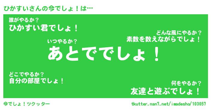 | 自動車の名前っぽいあだ名 | 『ヒカティマ』『ヒクア』『ヒント』 |