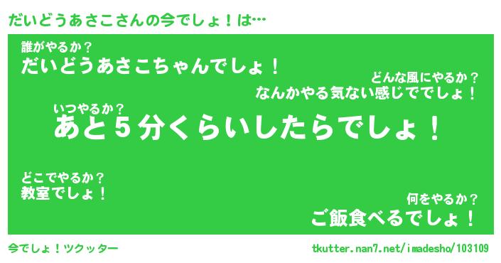 | 料理風あだ名 | 『節約★だいどうあさこと油揚げの玉子丼』 |