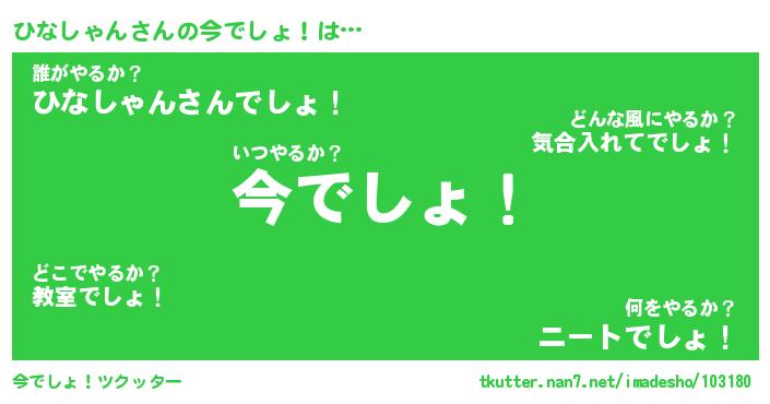 | ヒーロー風カッコイイあだ名 | 『スーパーヒナシャン』『幻影騎士ヒナ』 |