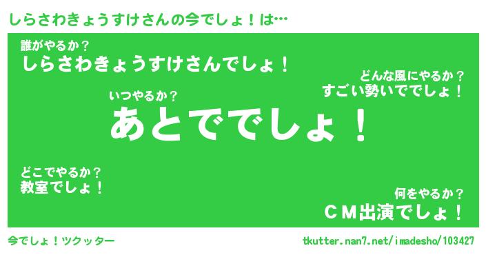 | 胡散臭い通販商品みたいなあだ名 | 『モテモテ間違いなし水晶球…その名も「しらさわきょうすけ」』 |
