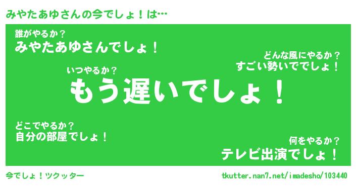 | 肩書あだ名 | 『みやたあゆ社長』『みやたあゆ総理大臣』 |