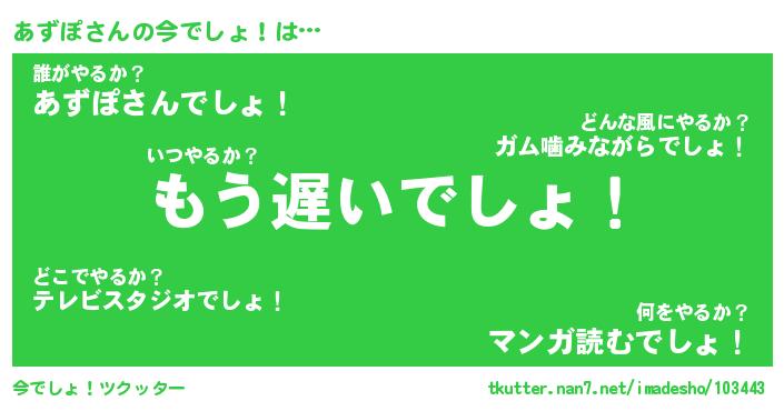 | 意味不明あだ名 | 『ペロリンあずぽ』『あずぽフォーエバー』 |