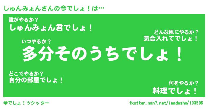 | 料理風あだ名 | 『節約★しゅんみょんと油揚げの玉子丼』 |