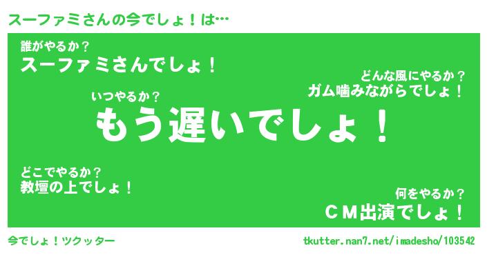 | ヘコむあだ名 | 『スーもー』『牛乳』『スー太郎』 |