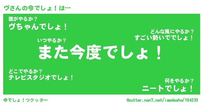 | ヘコむあだ名 | 『ヴにー』『酢こんぶ』『ヴっ子』 |