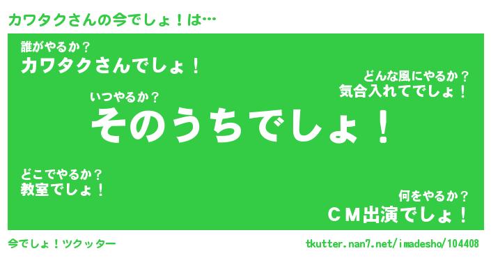 | 胡散臭い通販商品みたいなあだ名 | 『必ず成功する霊験あらたかなお札…その名も「カワタク」』 |