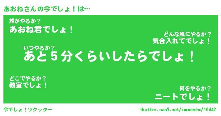 | 伝説のあだ名 | 『封印されしスナイパーあおね』 |