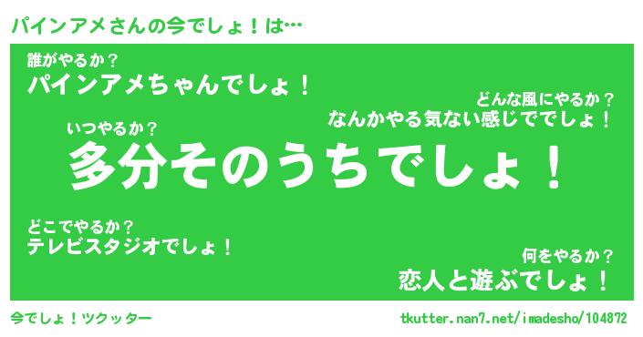 | ヒーロー風カッコイイあだ名 | 『スーパーパインアメ』『天弓騎士パイ』 |
