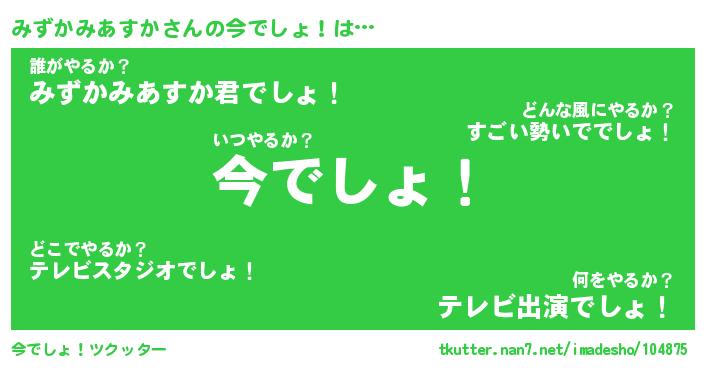 | 胡散臭い通販商品みたいなあだ名 | 『必ず成功するブレスレット…その名も「みずかみあすか」』 |