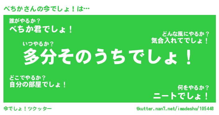 | 男性向けラノベタイトル風あだ名 | 『べちかの憂鬱』 |