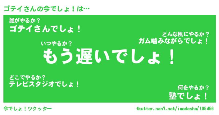 | ポケモン風あだ名 | 『ゴテチュウ』『ゴテイダネ』 |
