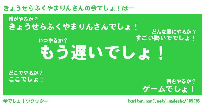| 胡散臭い通販商品みたいなあだ名 | 『必ず成功するブレスレット…その名も「きょうせらふくやまりん」』 |