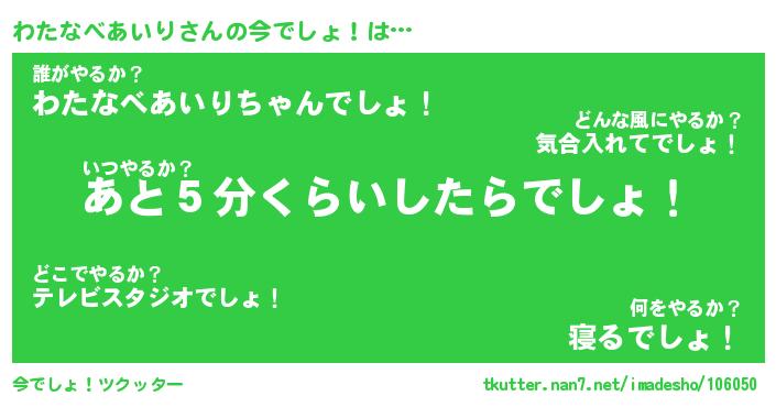 | ヘコむあだ名 | 『わたにー』『レバニラ』『わたっぺ』 |