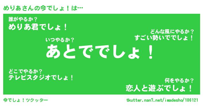 | 胡散臭い通販商品みたいなあだ名 | 『モテモテ間違いなし水晶球…その名も「めりあ」』 |