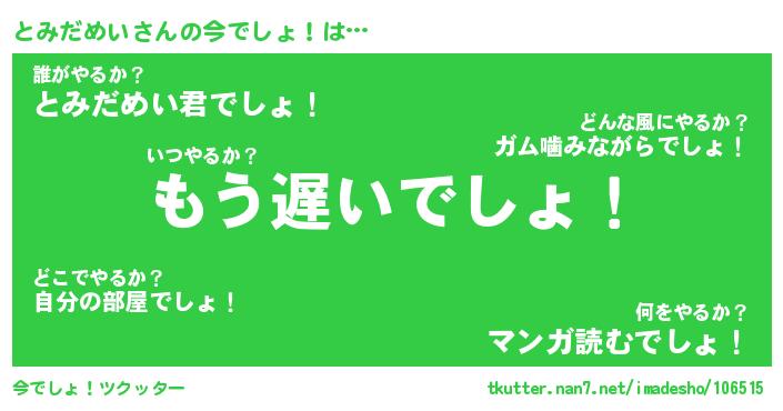 | 胡散臭い通販商品みたいなあだ名 | 『必ず成功するブレスレット…その名も「とみだめい」』 |