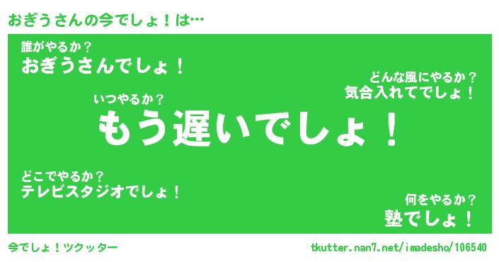 | 胡散臭い通販商品みたいなあだ名 | 『必ず成功するブレスレット…その名も「おぎう」』 |