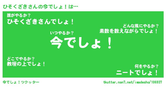 | ヒーロー風カッコイイあだ名 | 『スーパーヒソクザキ』『幻影騎士ヒソ』 |