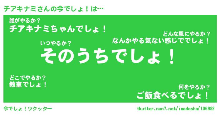 | ヘコむあだ名 | 『チアふぇ~』『酢こんぶ』『チアお』 |