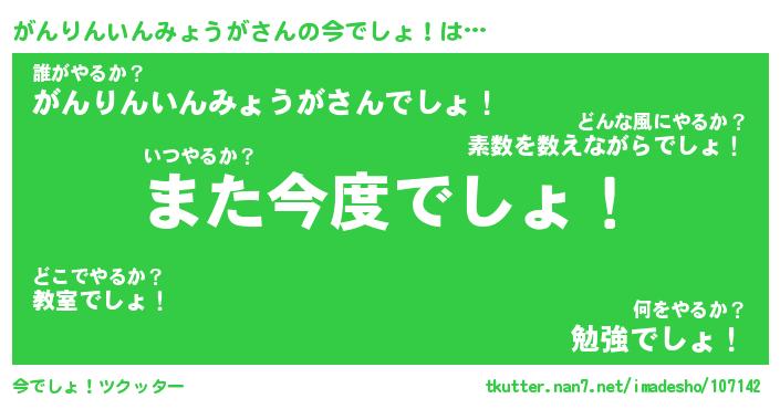 | 伝説のあだ名 | 『封印されしスナイパーがんりんいんみょうが』 |